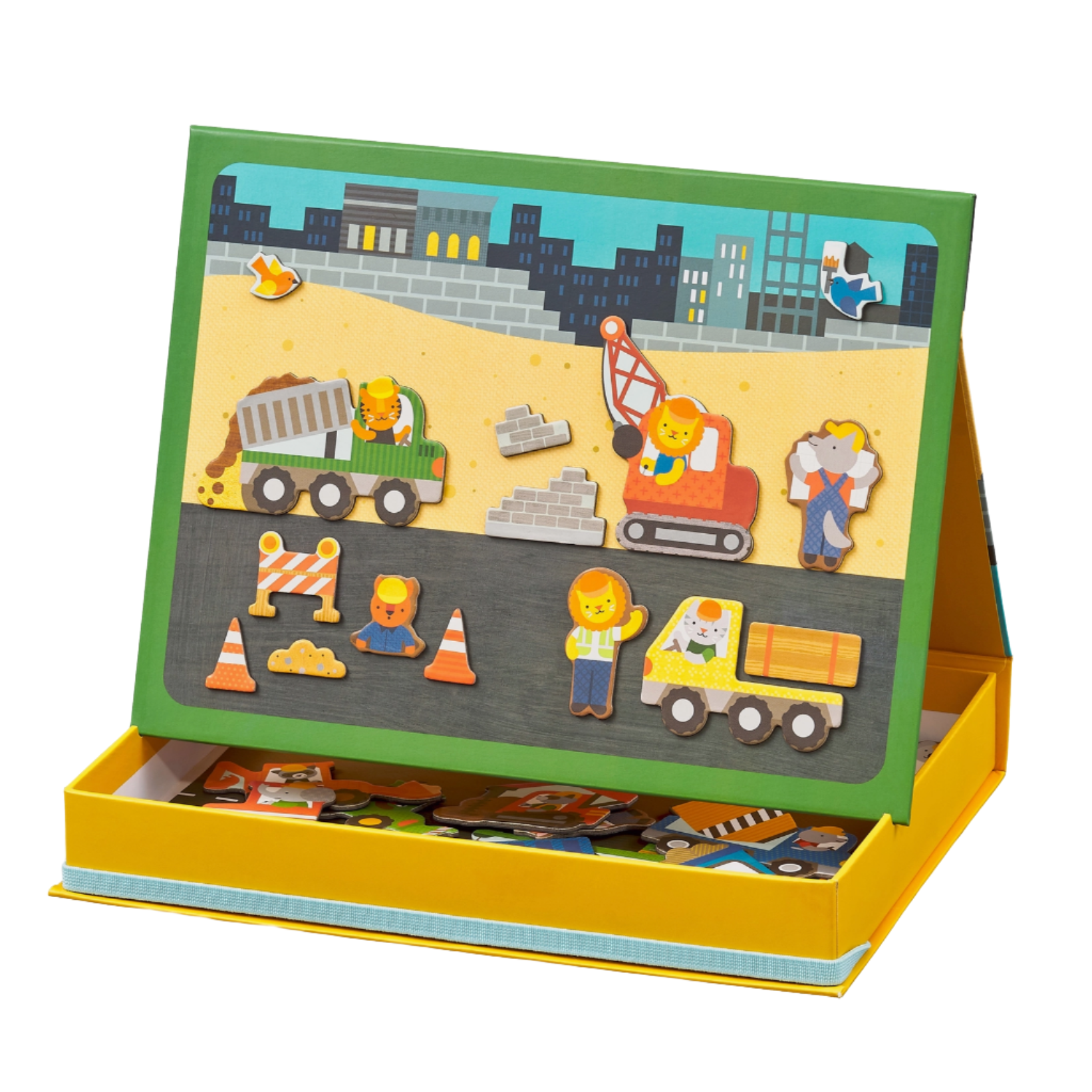 - Decorate two construction scenes with little busy animal workers in this Construction Site Magnetic Play Scene