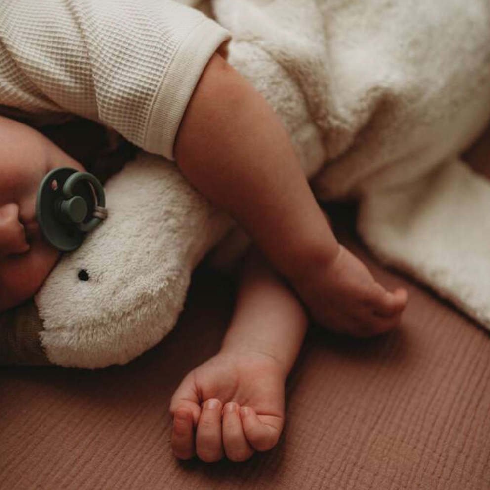 - Removable pillow filled with organic spelt chaff, to be warmed in an oven or cooled in the freezer