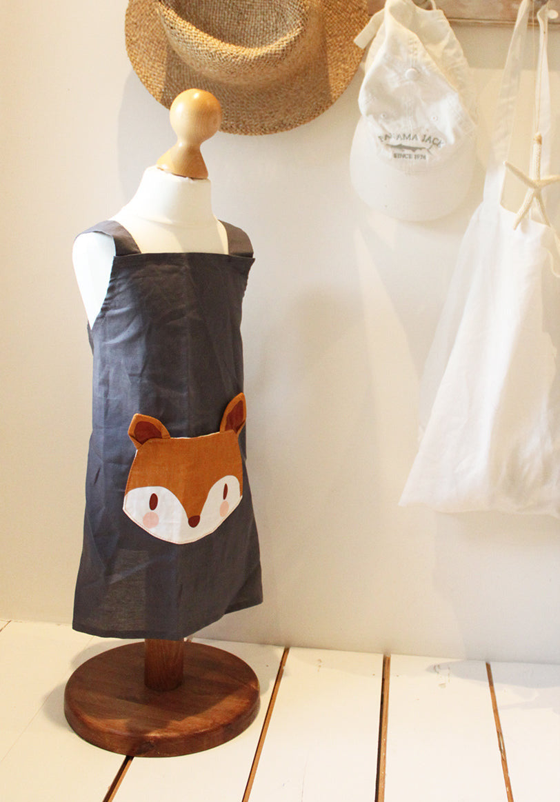 - Linen apron with animal pocket front