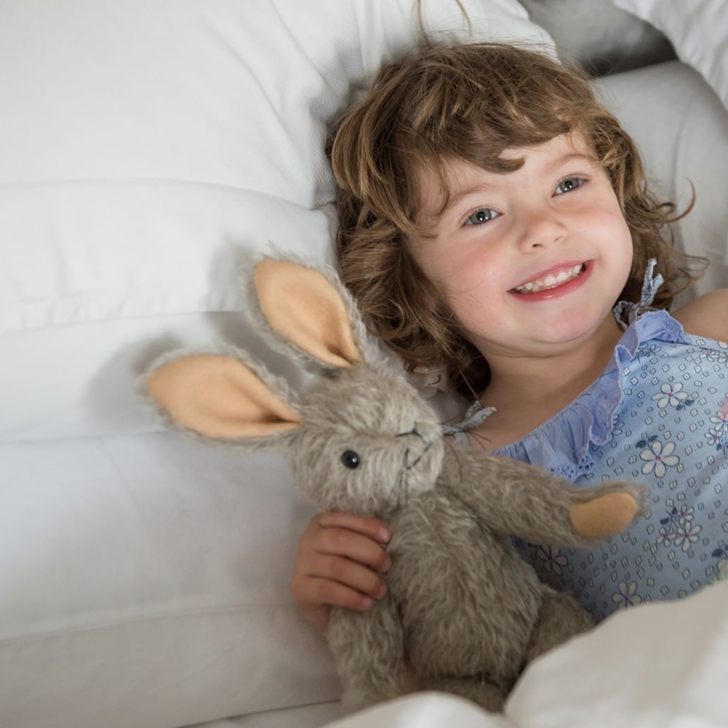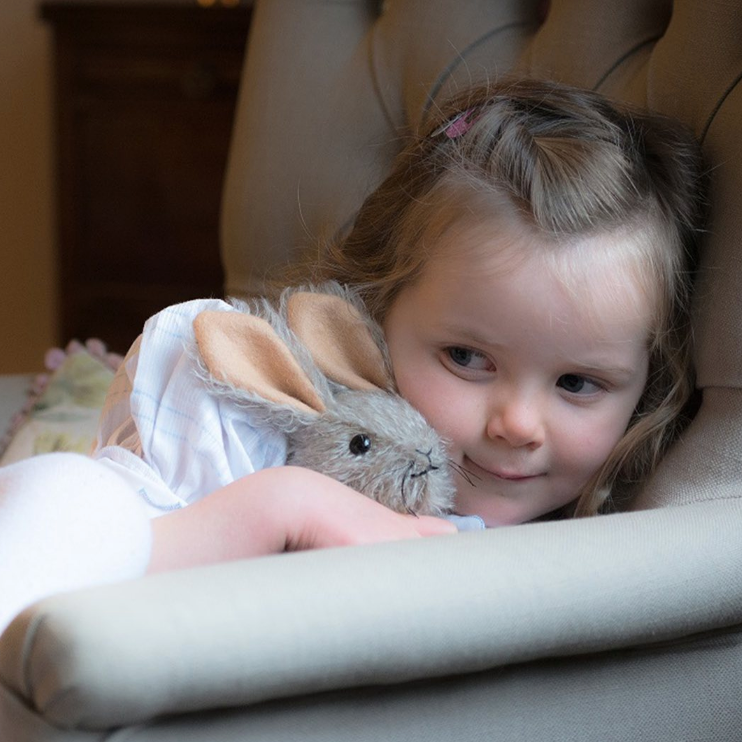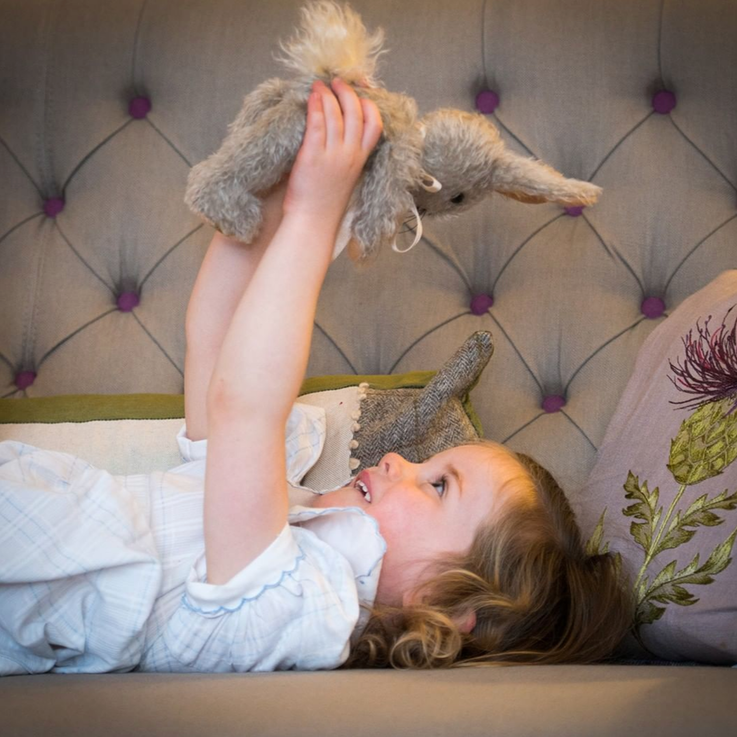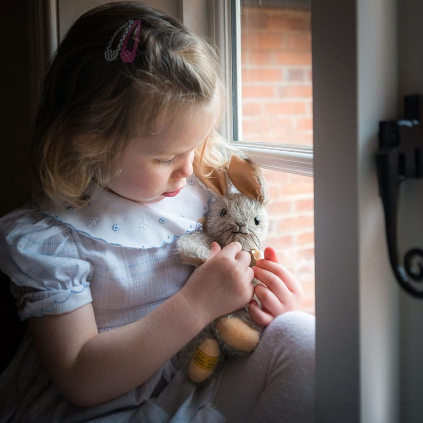 - Handmade from dove-grey mohair, he features slender ears that are lined in pure wool felt, along with an adorable fluffy white mohair bobtail that perfectly co-ordinates with his cream satin bow.