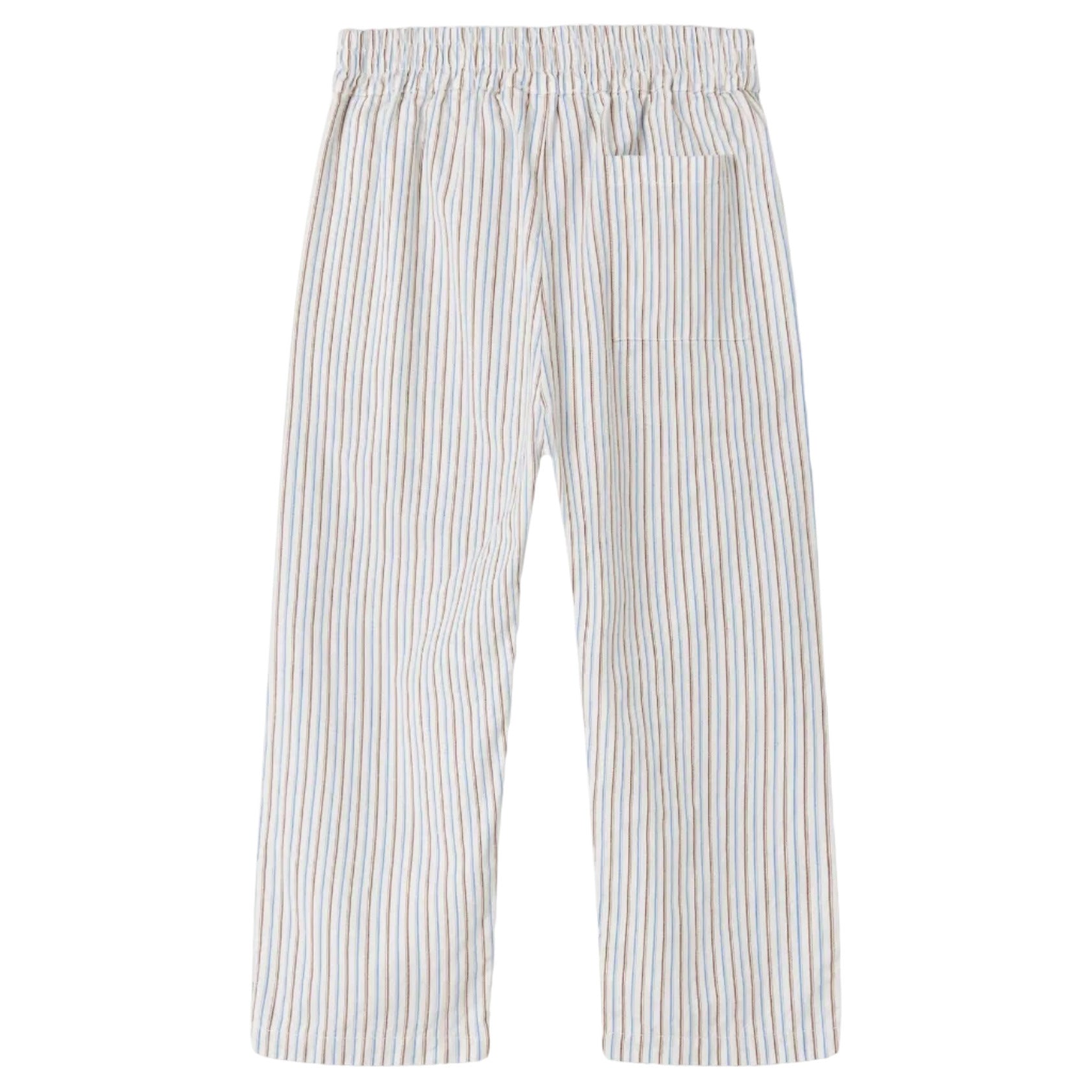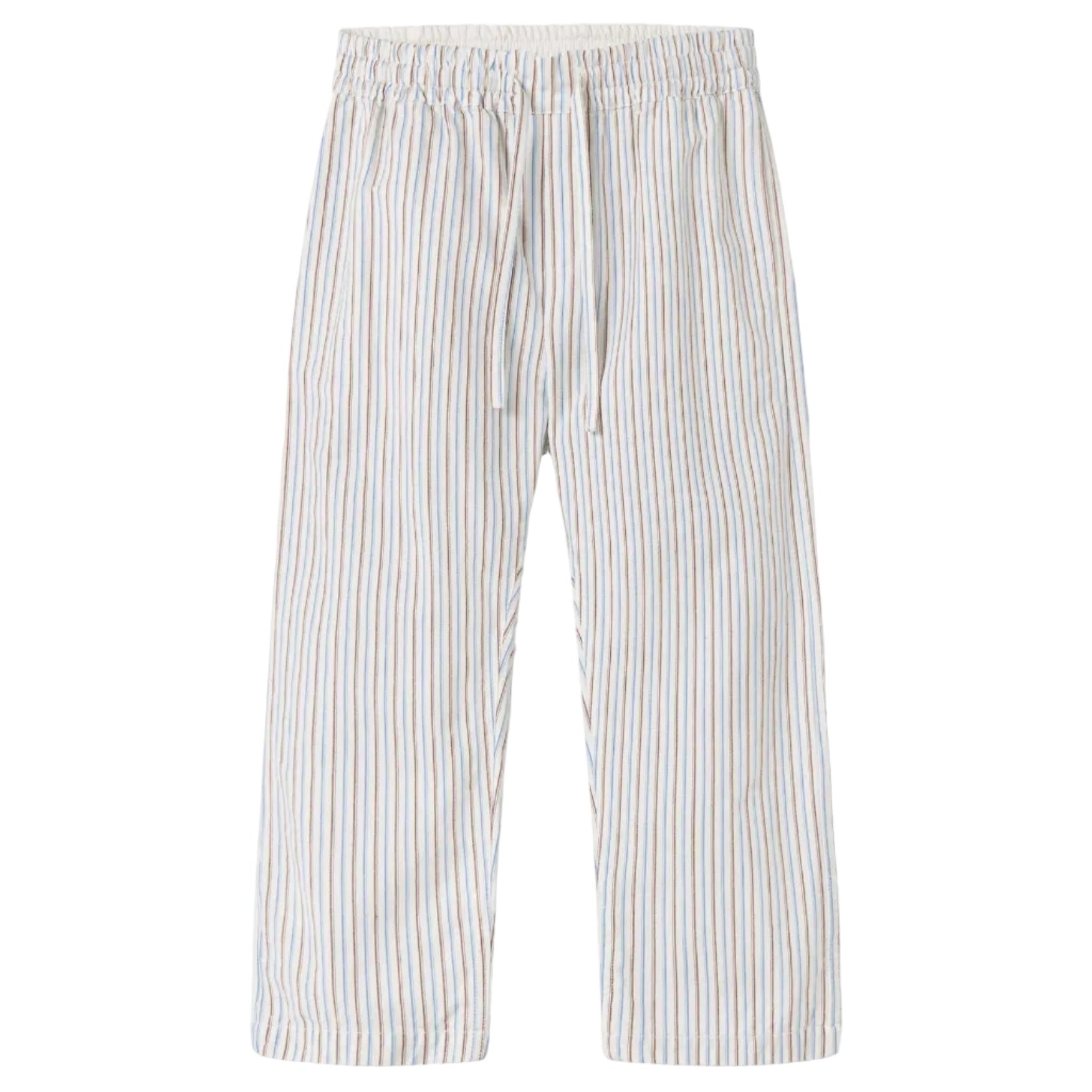 - Blue and brown stripe faux drawstring pants