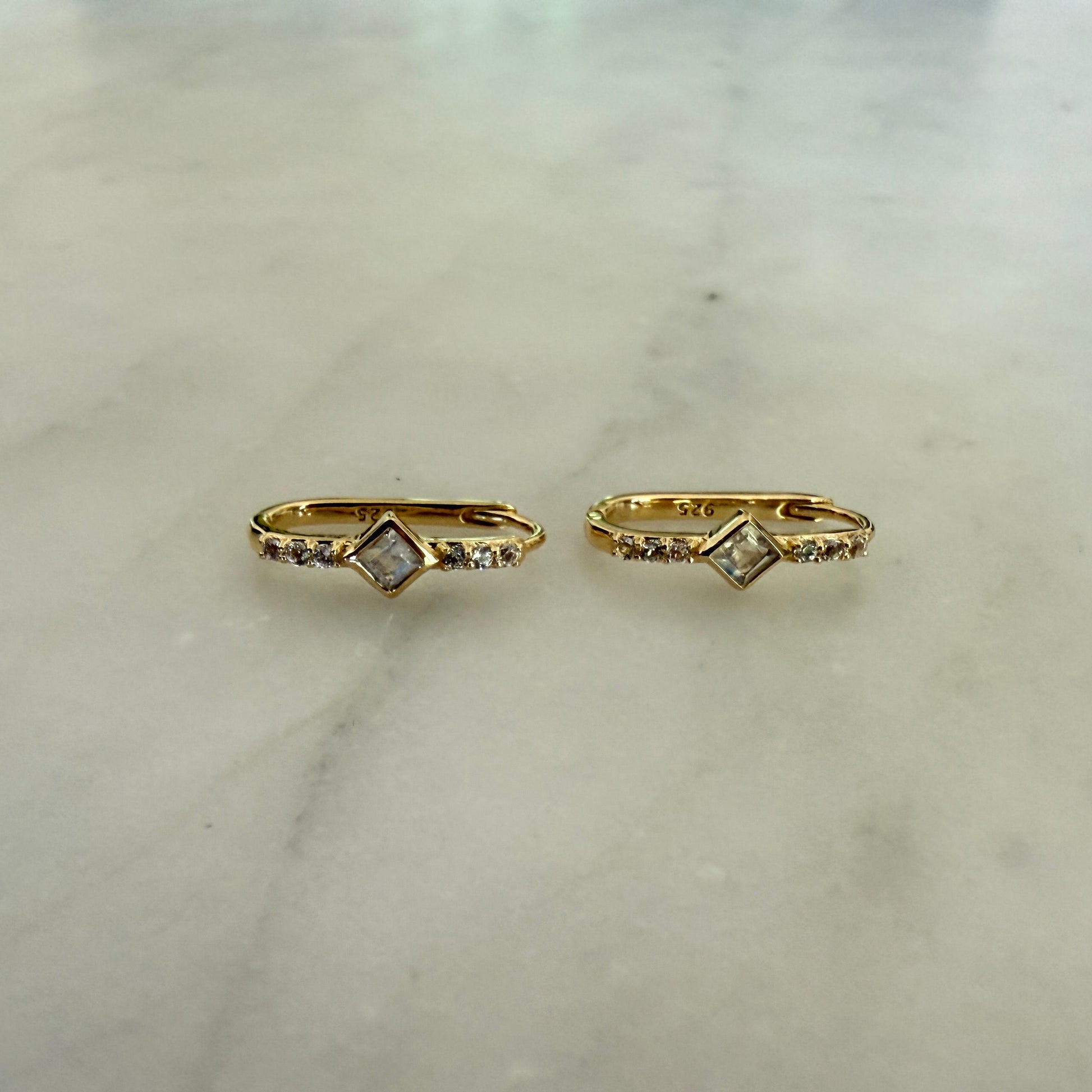 RAINBOW MOONSTONE & WHITE TOPAZ HUGGIE HOOPS