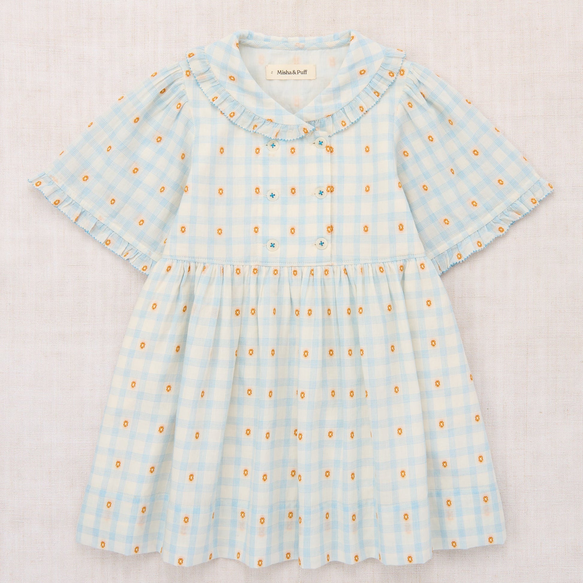 - A dress in lightweight organic cotton plaid, with a woven textured design