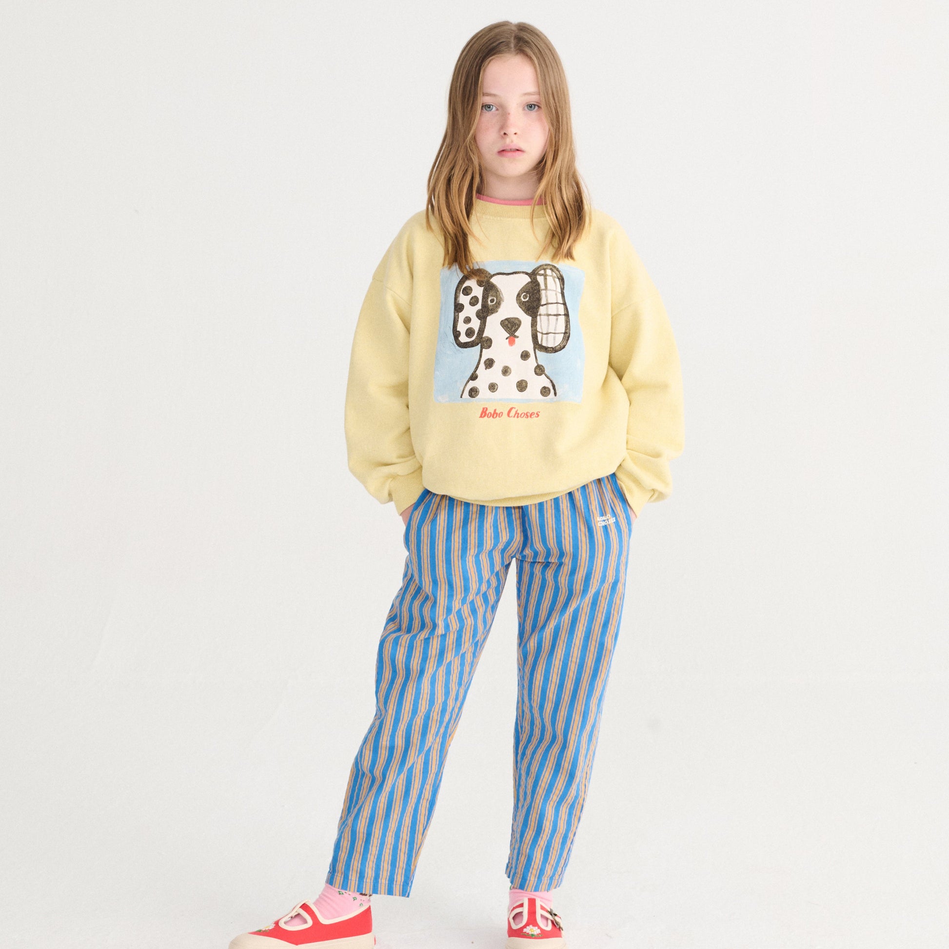 - Yellow cotton sweatshirt with silkscreened print