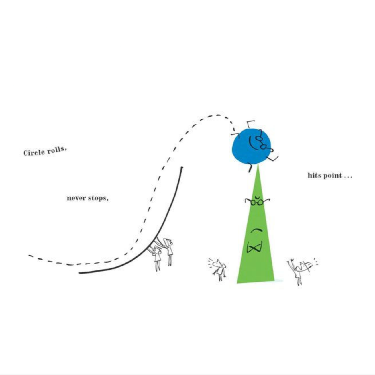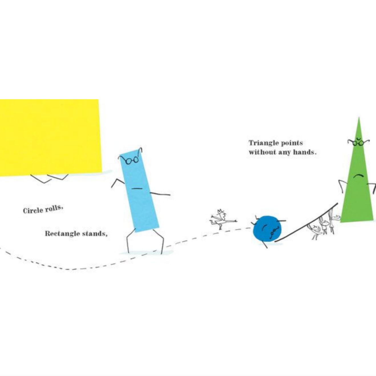 - When Circle rolls into one of Triangle's points and pops, chaos occurs until Octagon's "Stop!" brings everyone to their senses. An effortlessly rhyming text introduces us to a collection of shapes and subtly weaves their physical characteristics into traits that both lead to and solve a would-be catastrophe