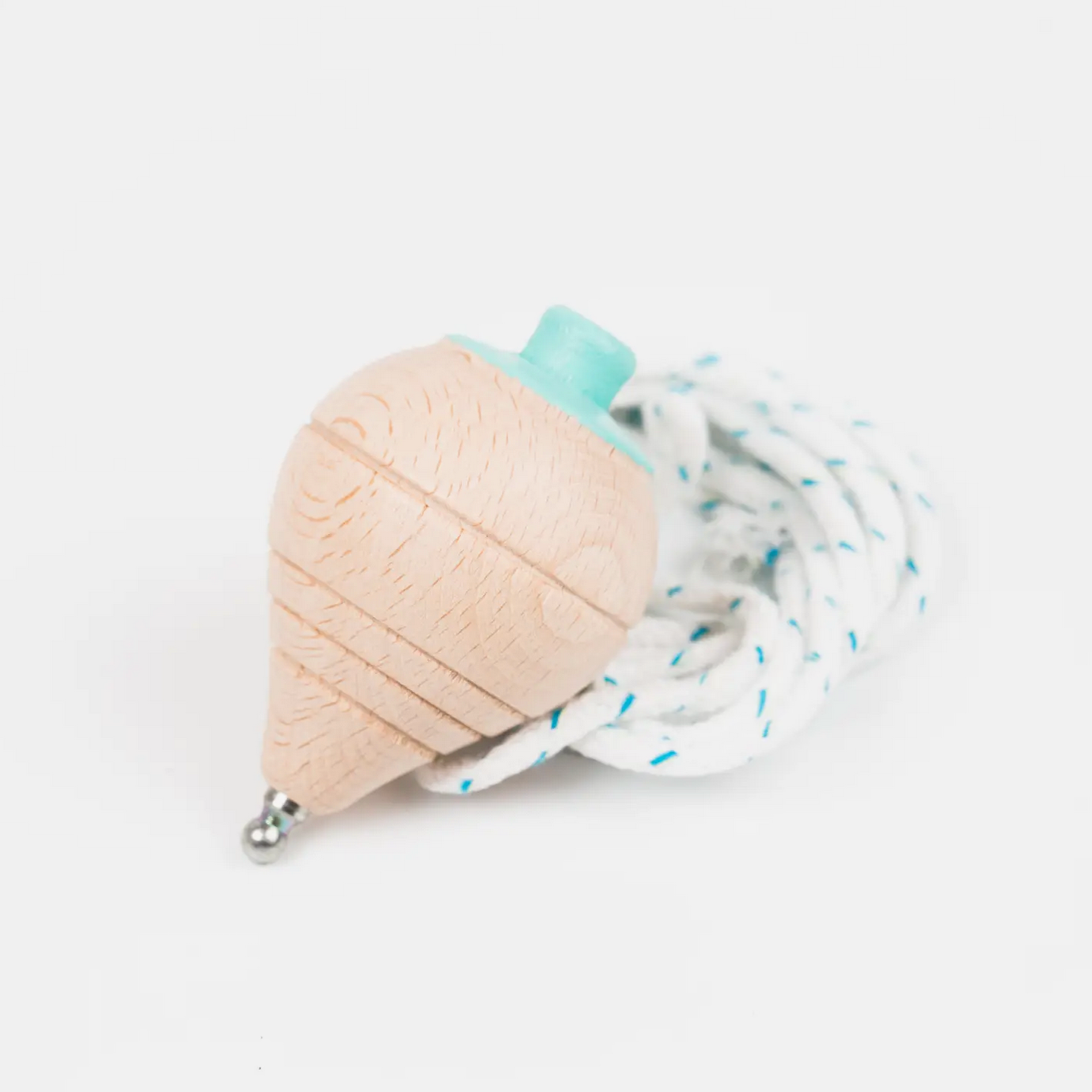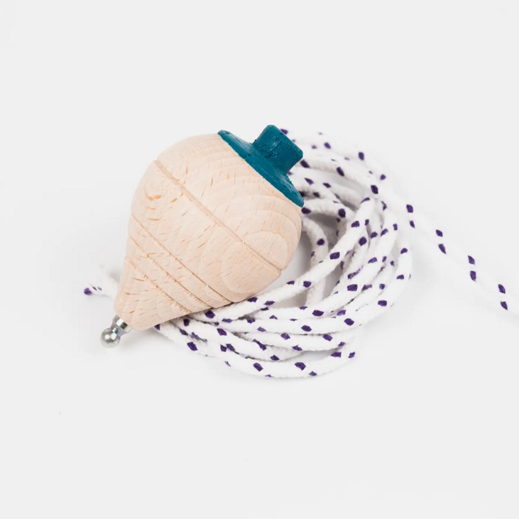 - Wind the string around the top and loop the end to your finger. Throw the top with energy and pull the sting at the same time. Watch the top spin around. Try to pick up the spinning top with the string! It sounds easy, but it is not.