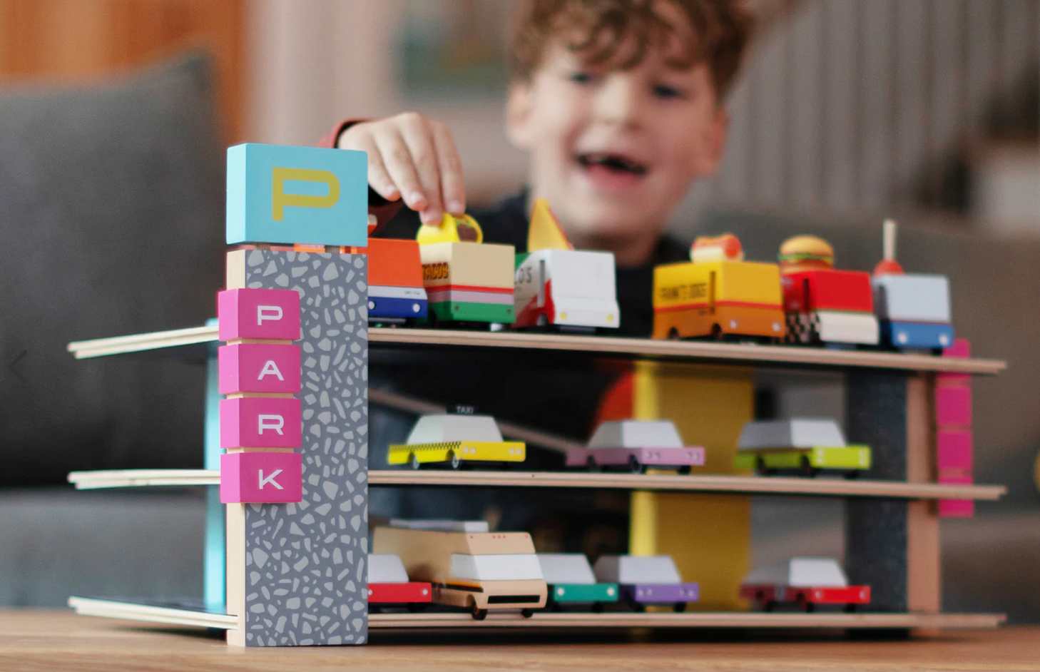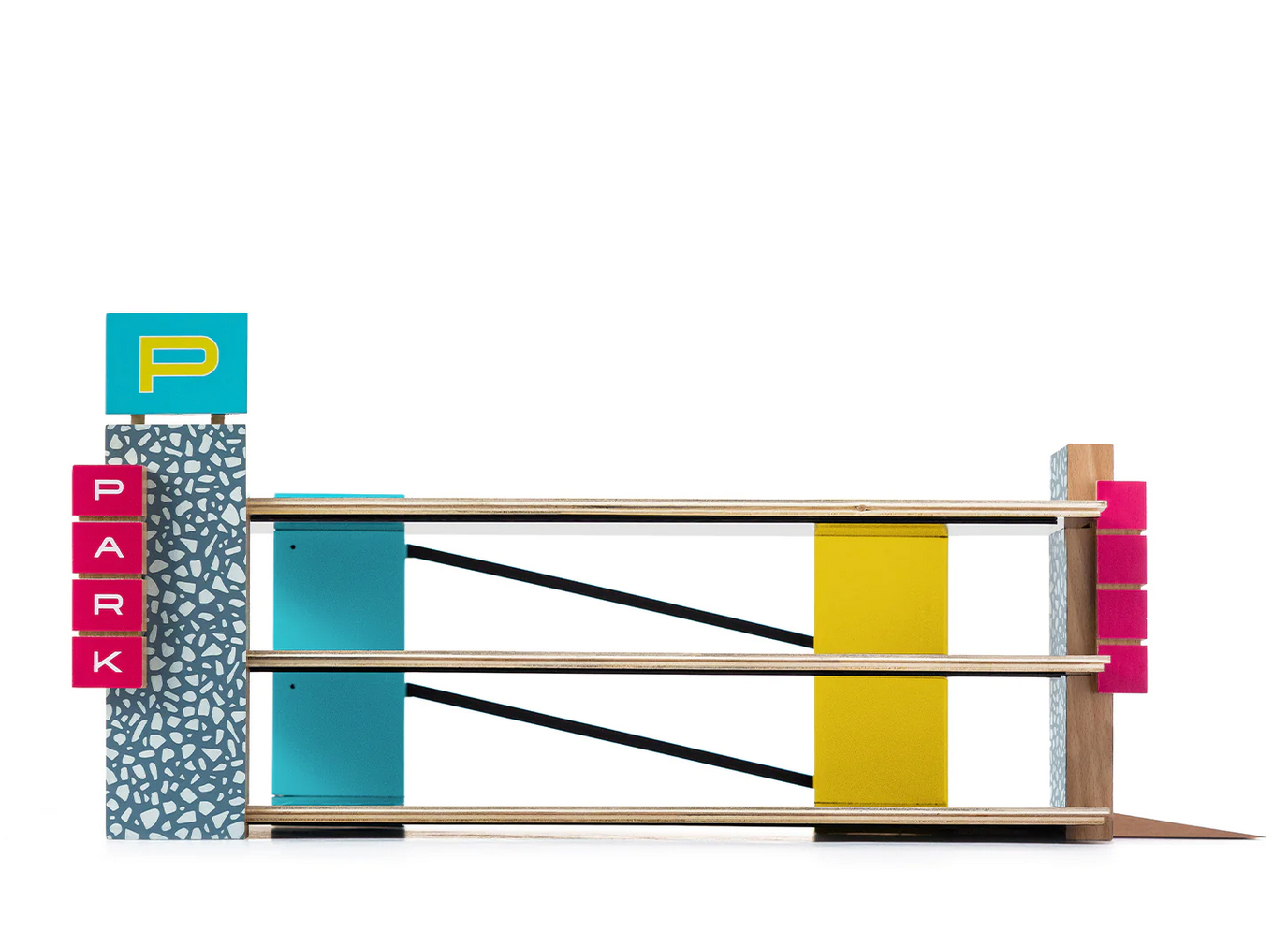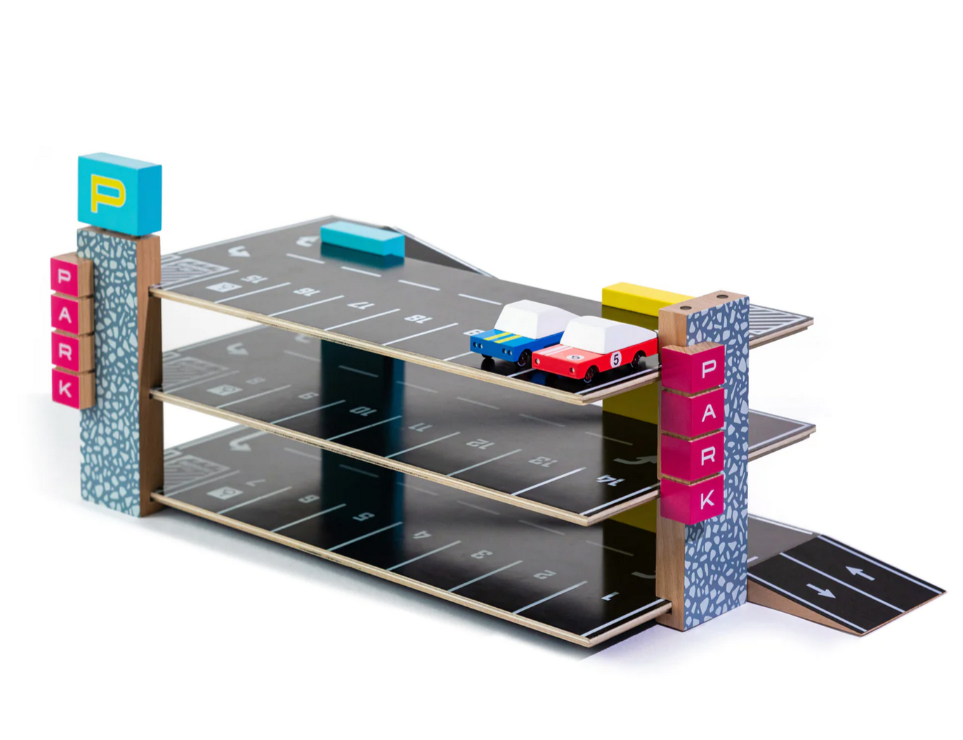 - Fully functional solid beech wood garage comes with 21 parking spots that magnetically hold your cars