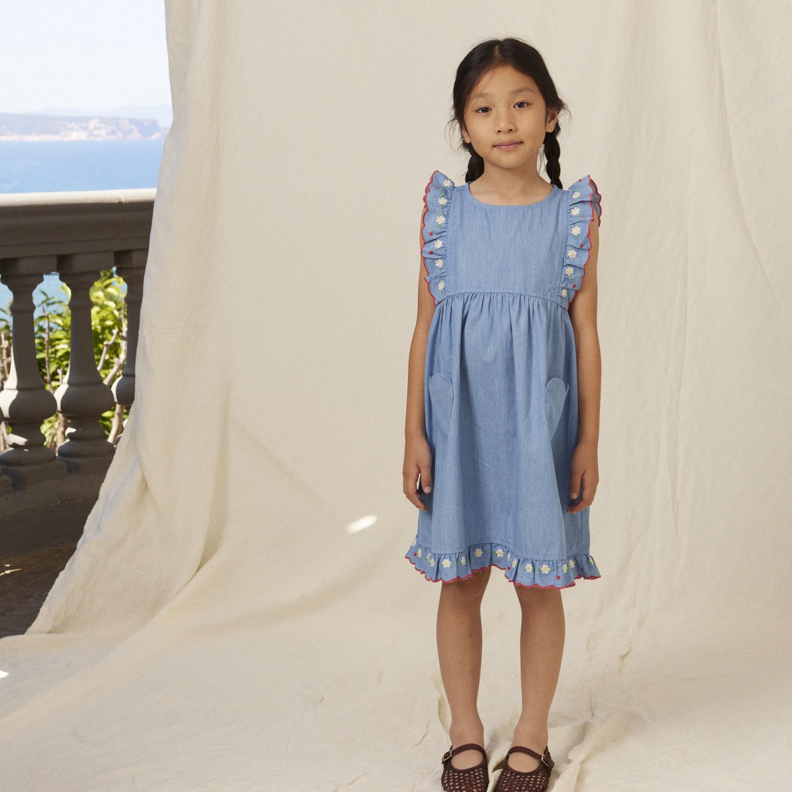 - Blue apron dress with heart pockets