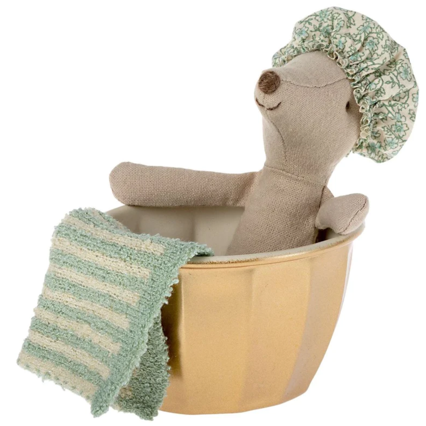 - Ms. Mouse gets squeaky clean in the tub, but her ears stay dry with her shower cap.