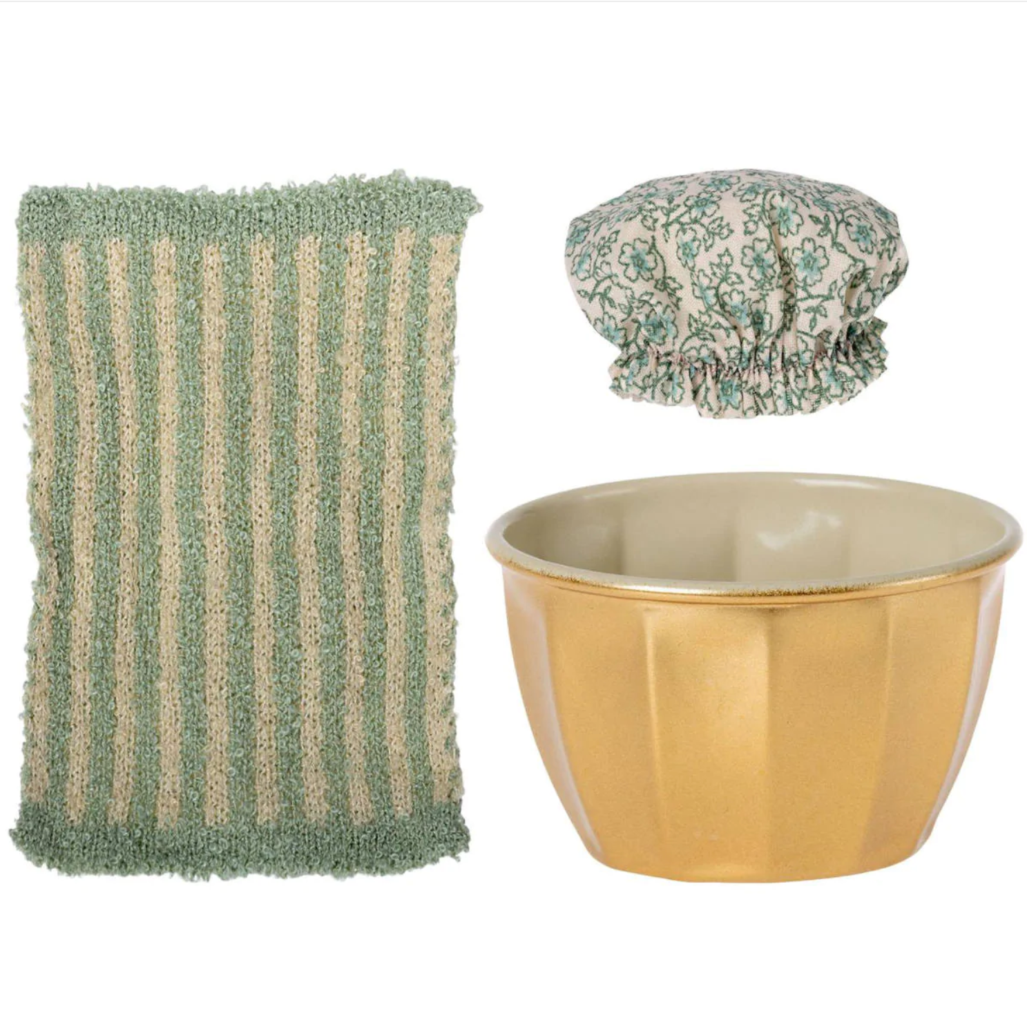 - She uses a cute gold metal cup for her tub.