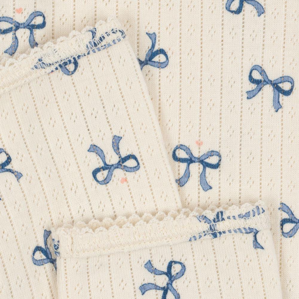 - Matching bow bleu pointelle onsie