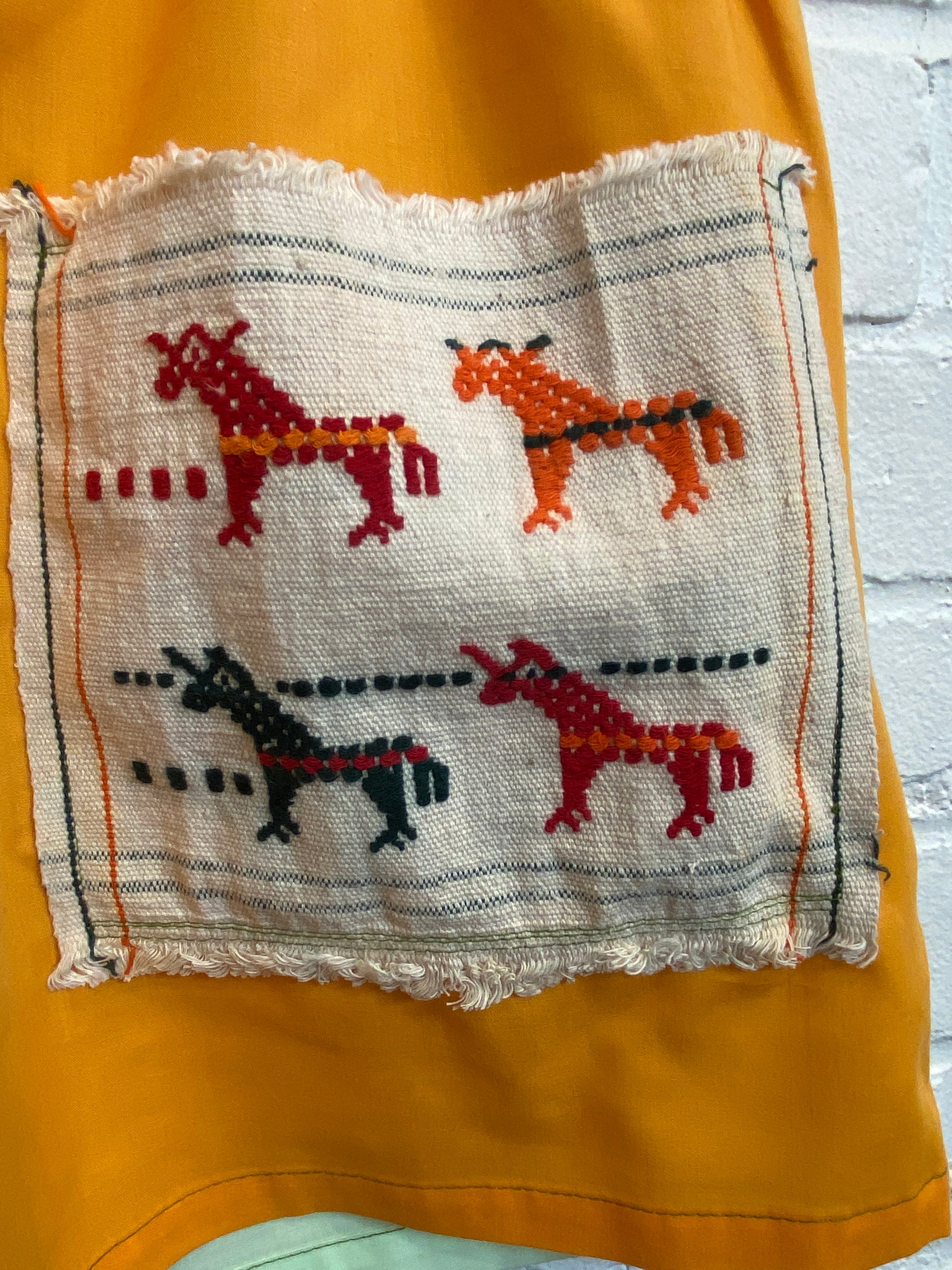 - Up-cycled vintage and dead stock textiles to make one-of-a-kind wear