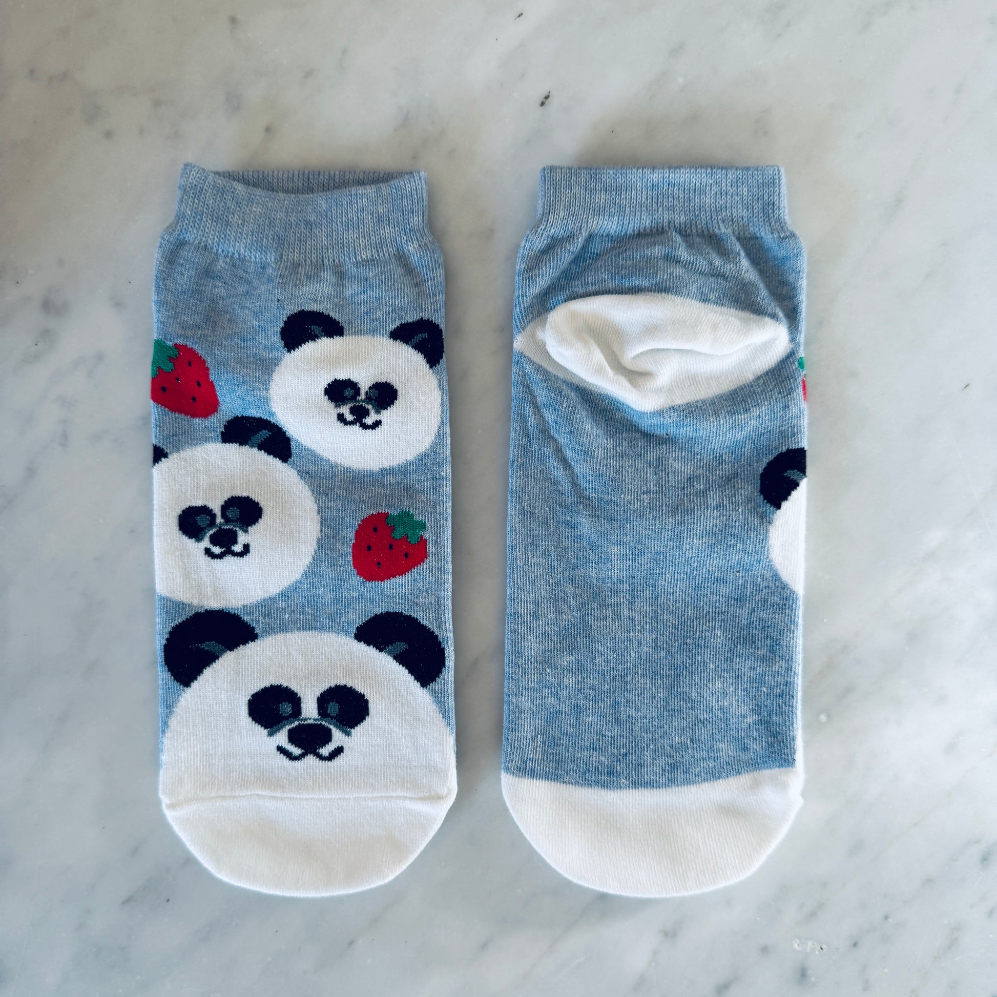 - Panda faces and strawberries ankle socks