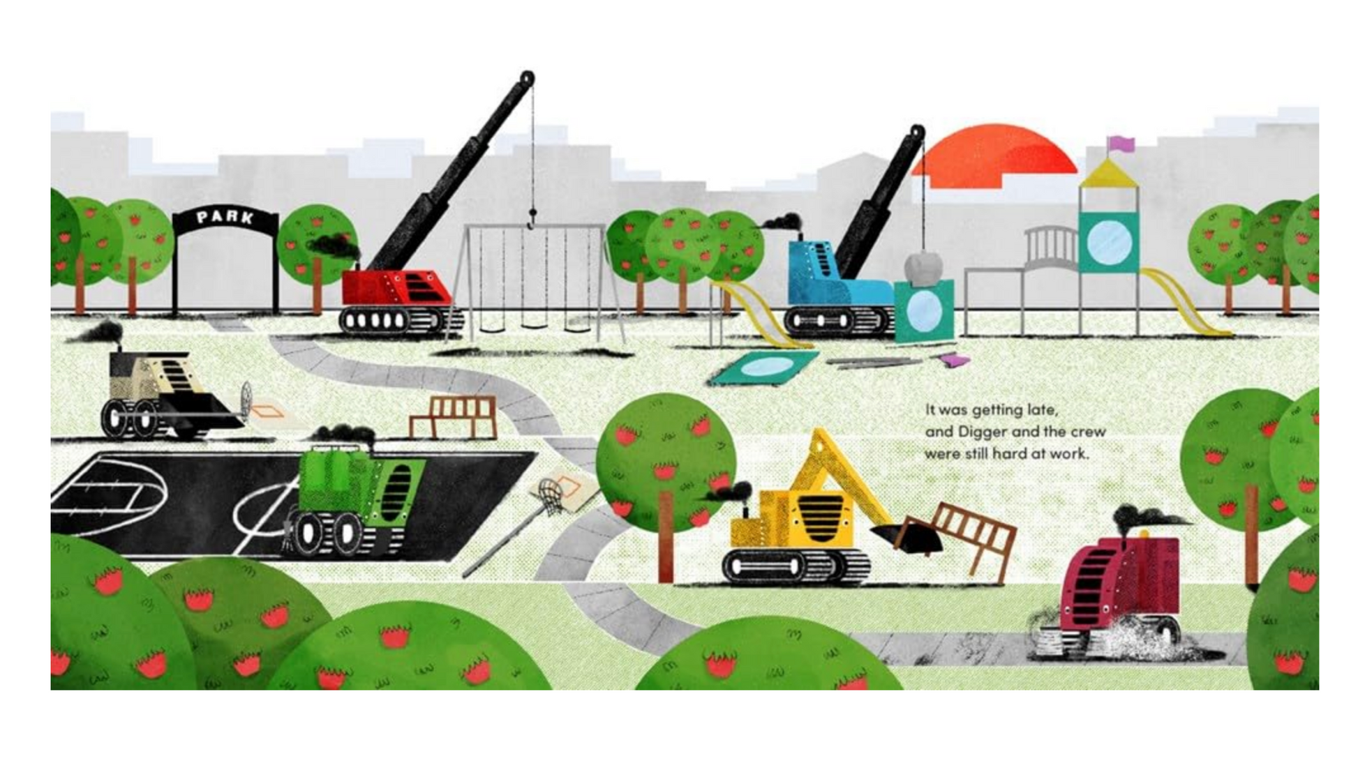- After a long day’s work, Digger and the other big trucks are ready to tuck themselves into bed