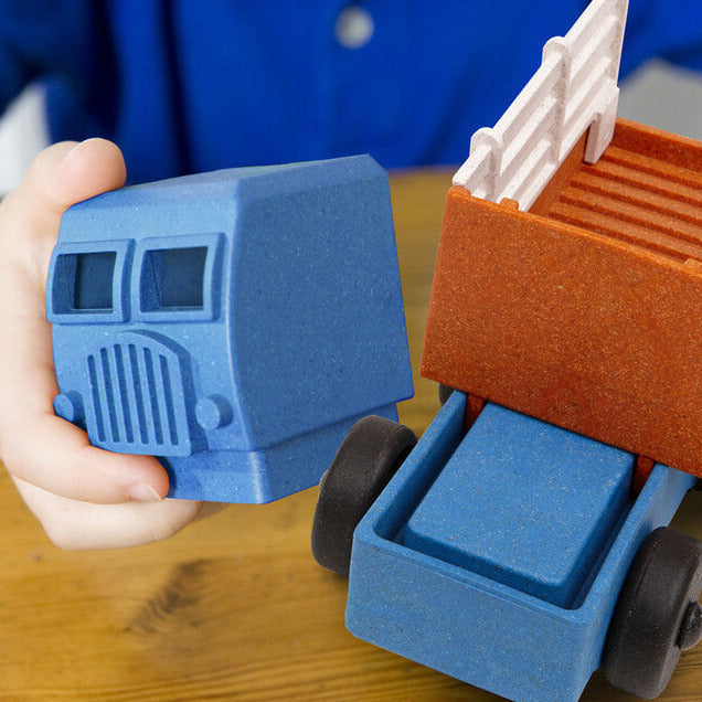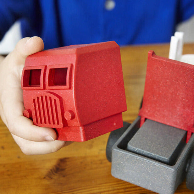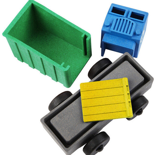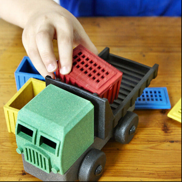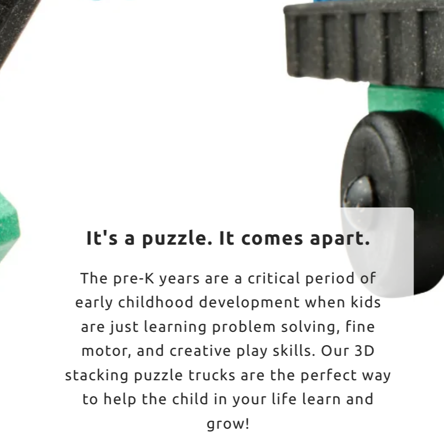 Think of a 3D puzzle that becomes a truck when assembled. Designed for small hands, the toys are made with a little bit of wiggle room so that kids with developing motor skills are not frustrated. Our toys are designed for kids aged three and up - just at the point where kids are outgrowing "baby" toys but aren't quite ready for the precision required for more complicated building toys. And parts from one truck can be mixed and matched with parts from the other trucks!