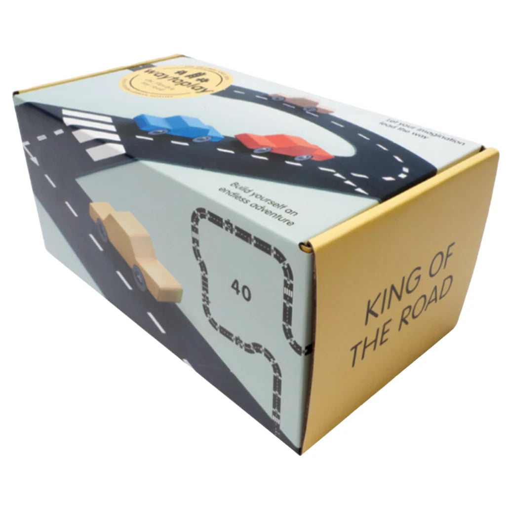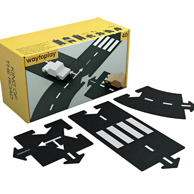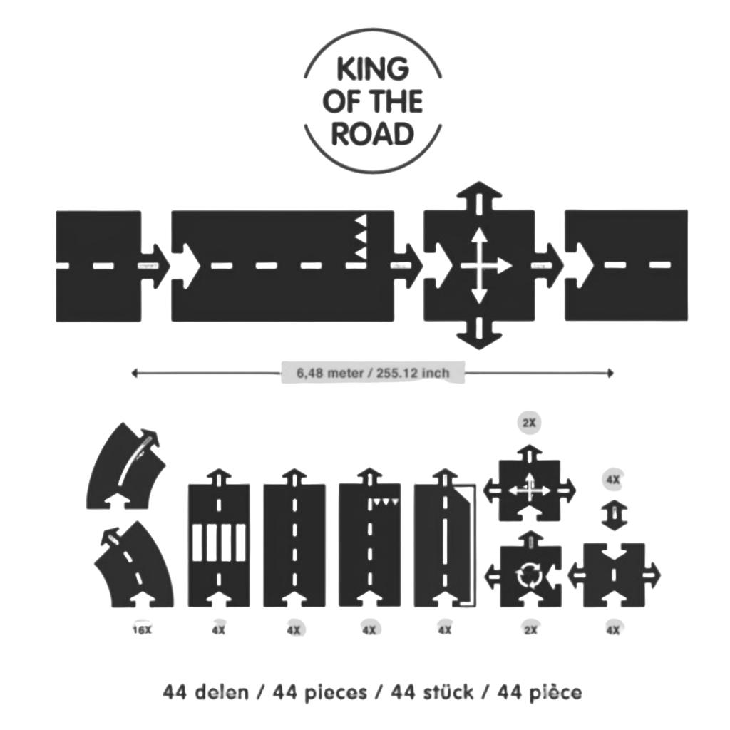 - King of the Road - 40 Piece Includes: 225" length of 16 curves and 16 straights, 4 intersections and 4 roundabouts that are easy to connect.