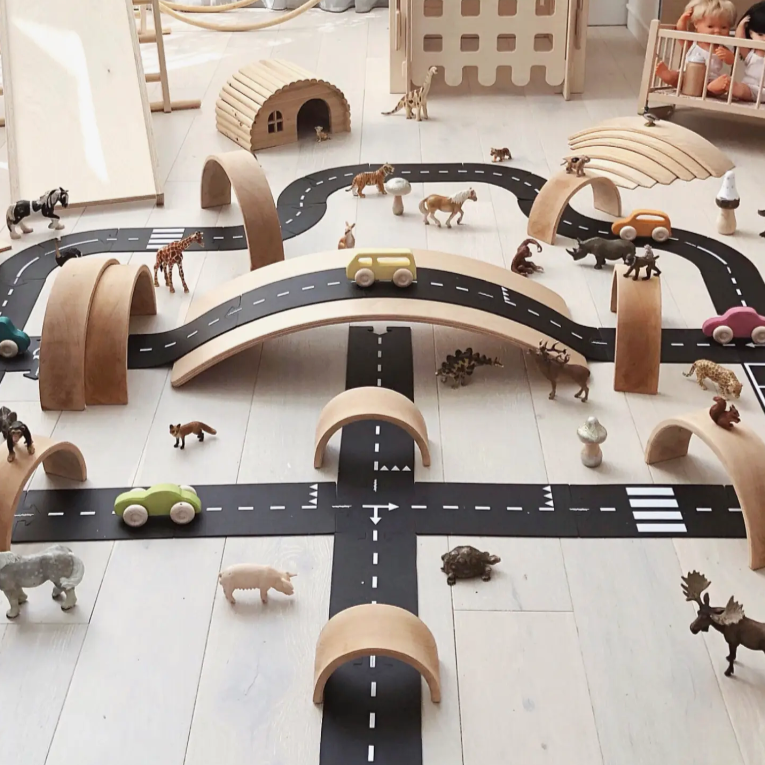 - Airport Set - Eight flexible pieces: Create taxiways, runways, and terminals for endless airport fun! Includes one wooden airplane with flexible, up-cycled wings, this plane is ready to take to the skies! Special markings of yellow taxiway lines, runway markings, and gate symbols make this airport extra realistic